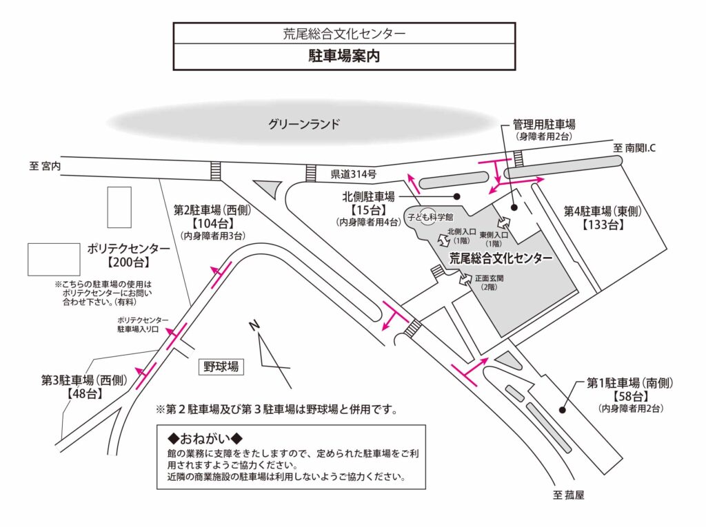 荒尾総合文化センター駐車場案内図